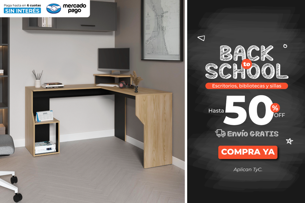 Combo office, habano y miel, incluye escritorio 120 y biblioteca