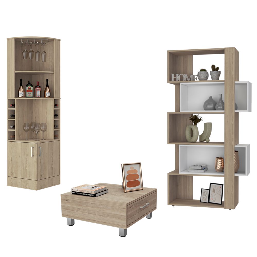 Combo beijing, rovere, incluye mesa de centro, bar y biblioteca cubo