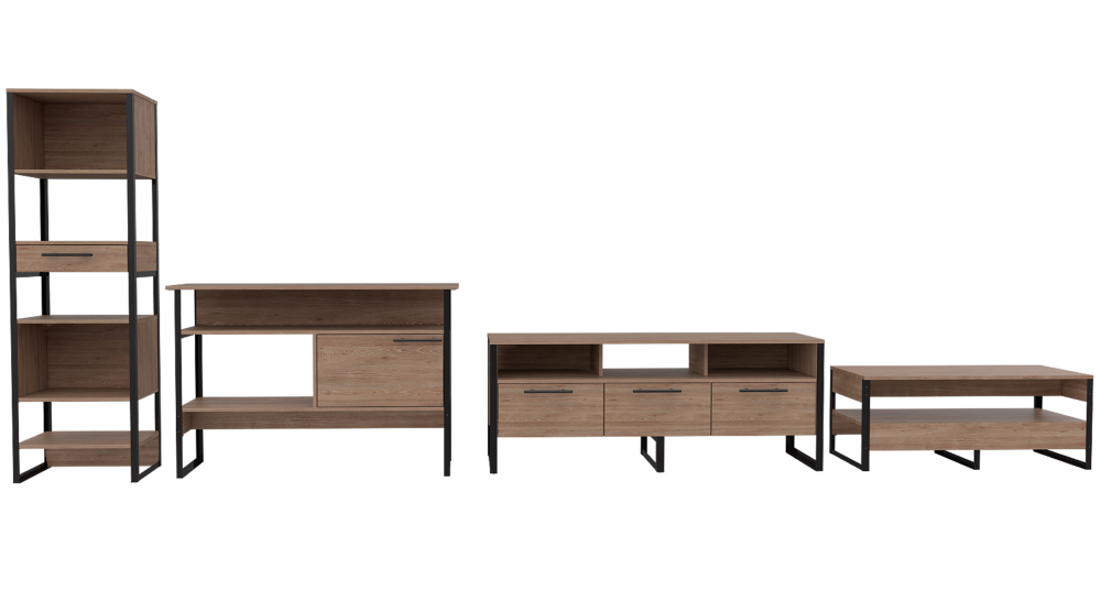 Combo magnum, miel, incluye rack tv, biblioteca y mesa centro