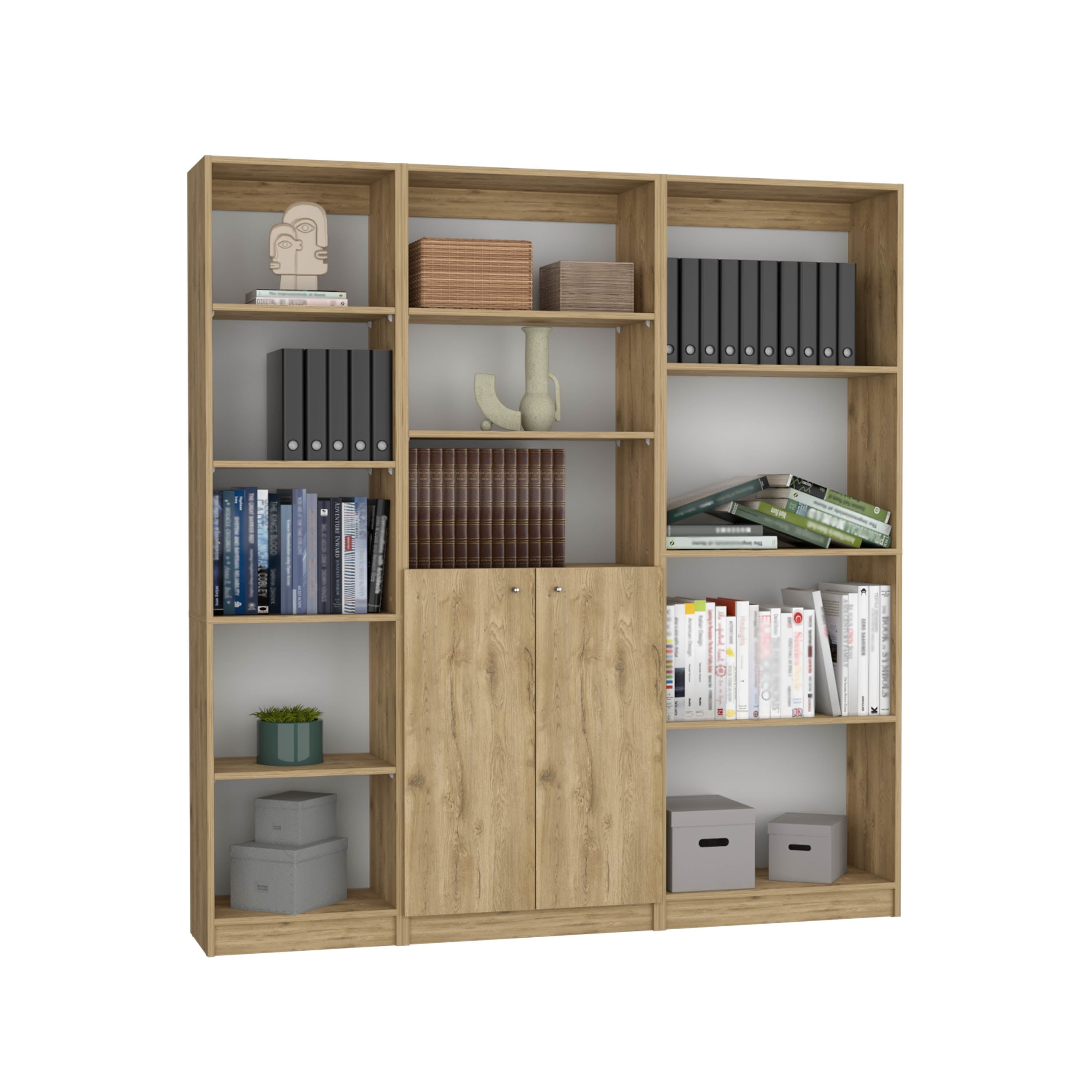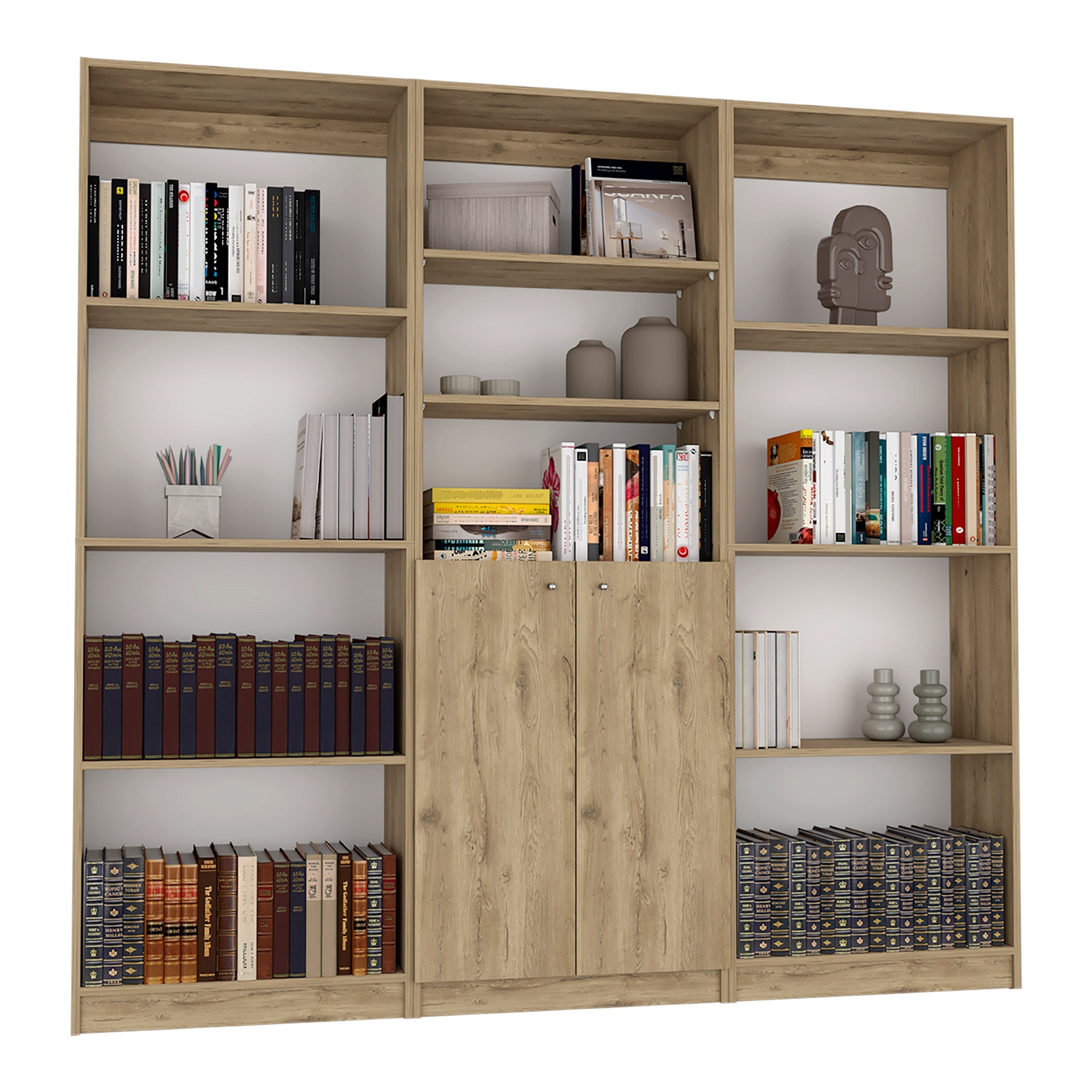 Combo home, estante colección 3, macadamia, con un estante con puertas batientes