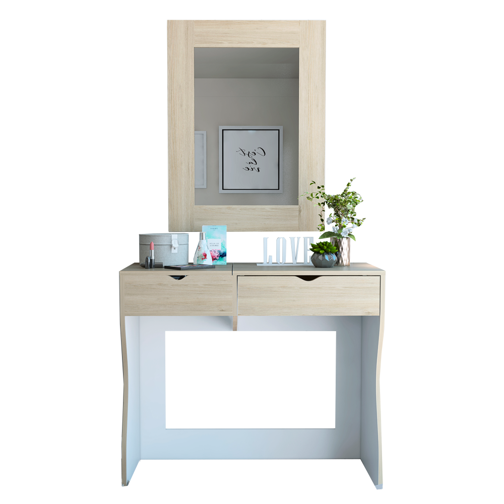 Combo perla, rovere y blanco, incluye tocador y espejo