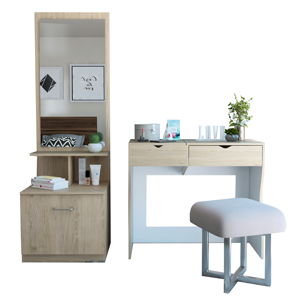 Combo perla, rovere y blanco, incluye mueble de tocador y velador c.espejo
