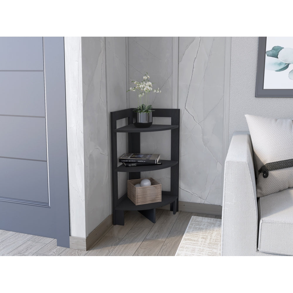 Mesa auxiliar esquinera riga, wengue, con varios entrepaños