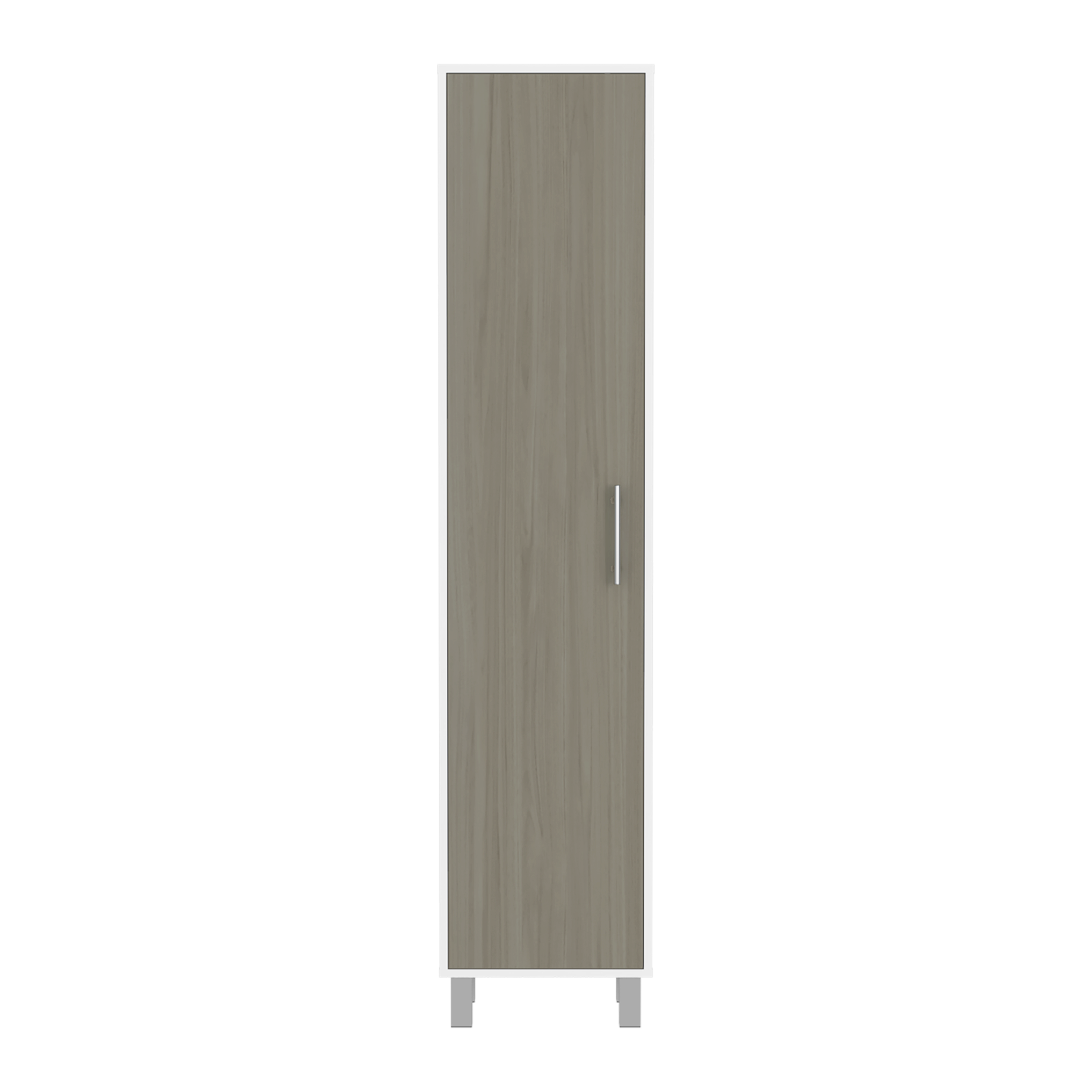 Closet custer wengue, con una puerta batiente, espejo y variedad de entrepaños