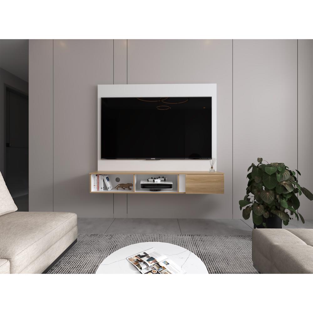Panel tv65 dassel una puerta, blanco y fresno