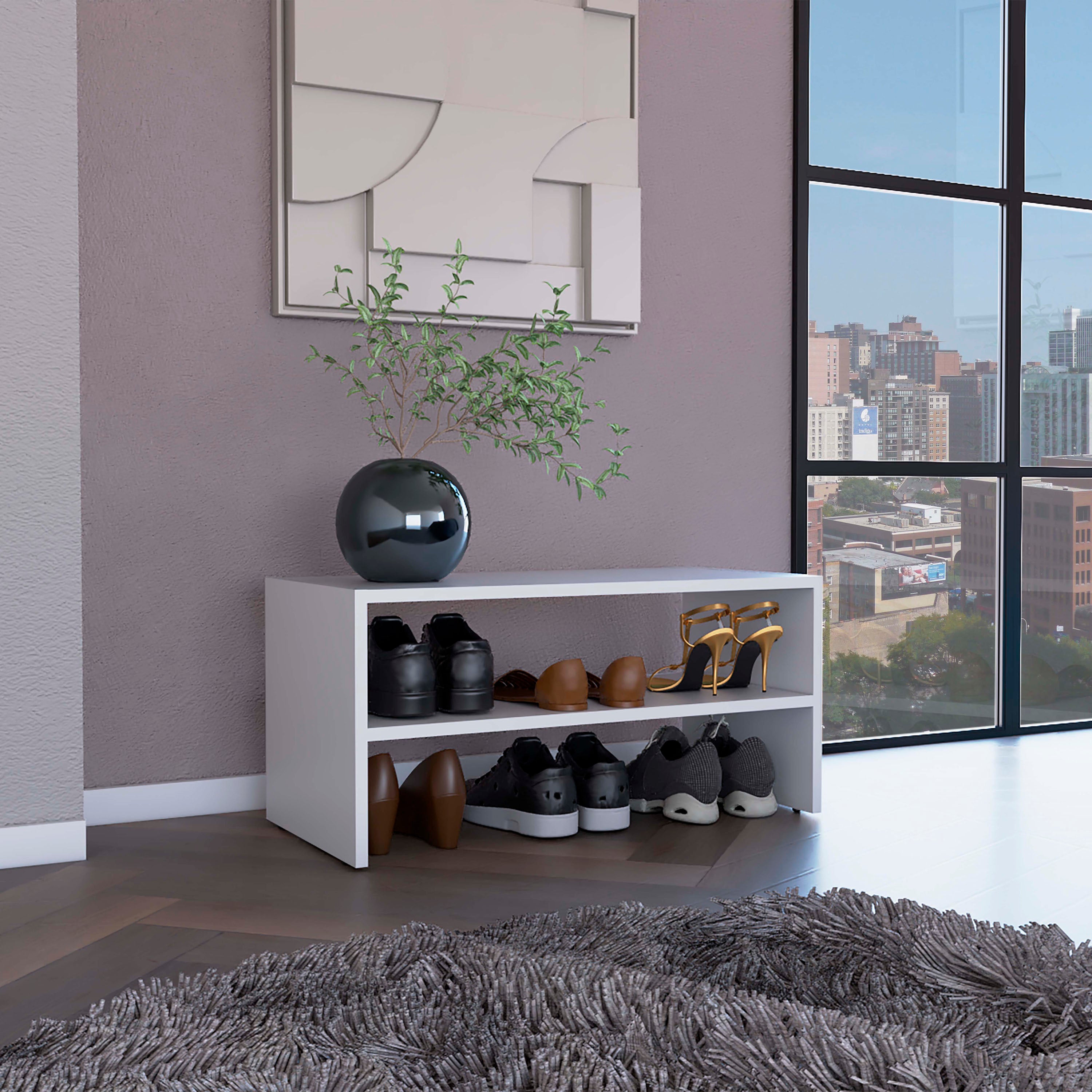 Modulo zapatero, blanco, con cuatro espacios amplios para colocar todo tipo de calzado
