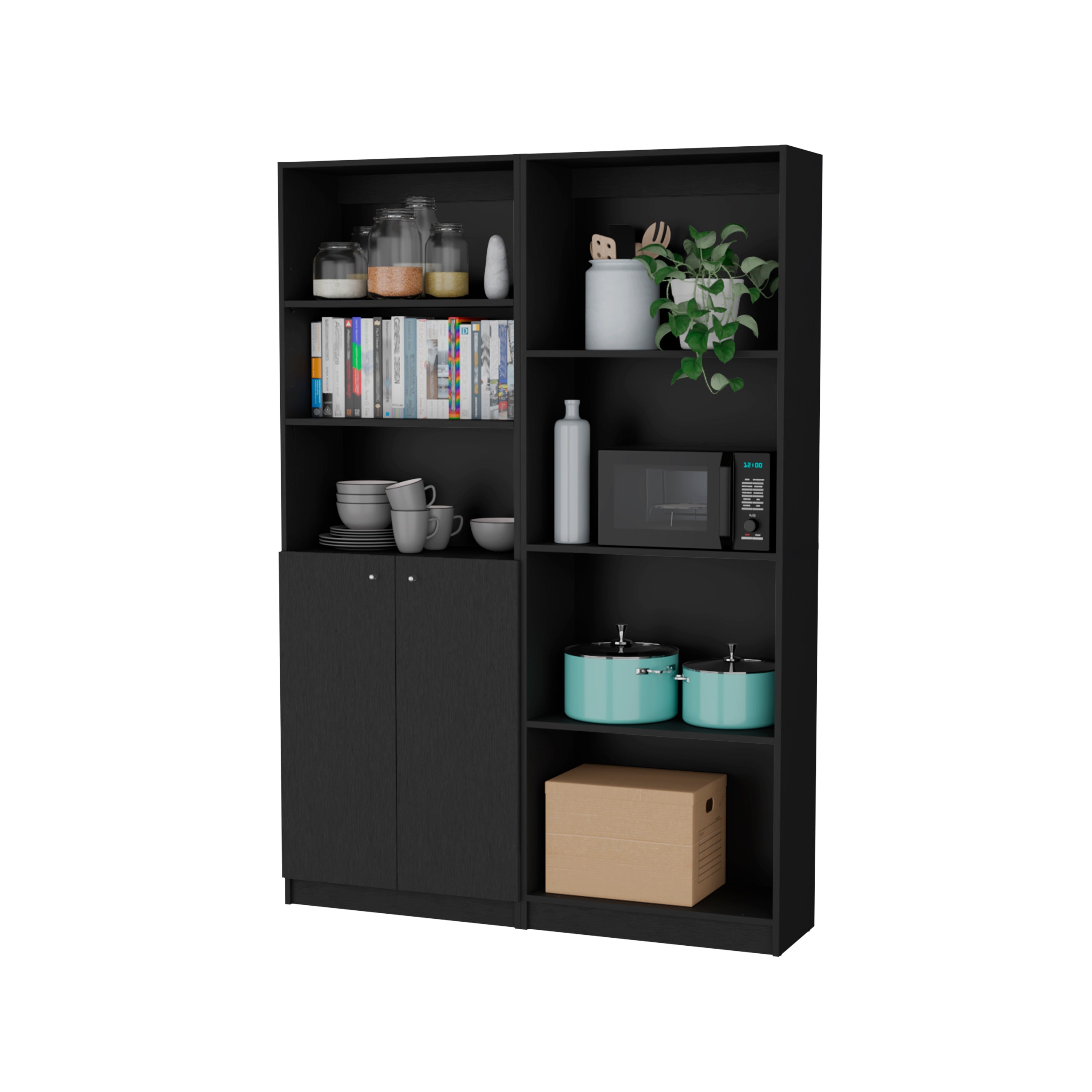 Combo home, estante colección 3, wengue, con un estante con puertas batientes