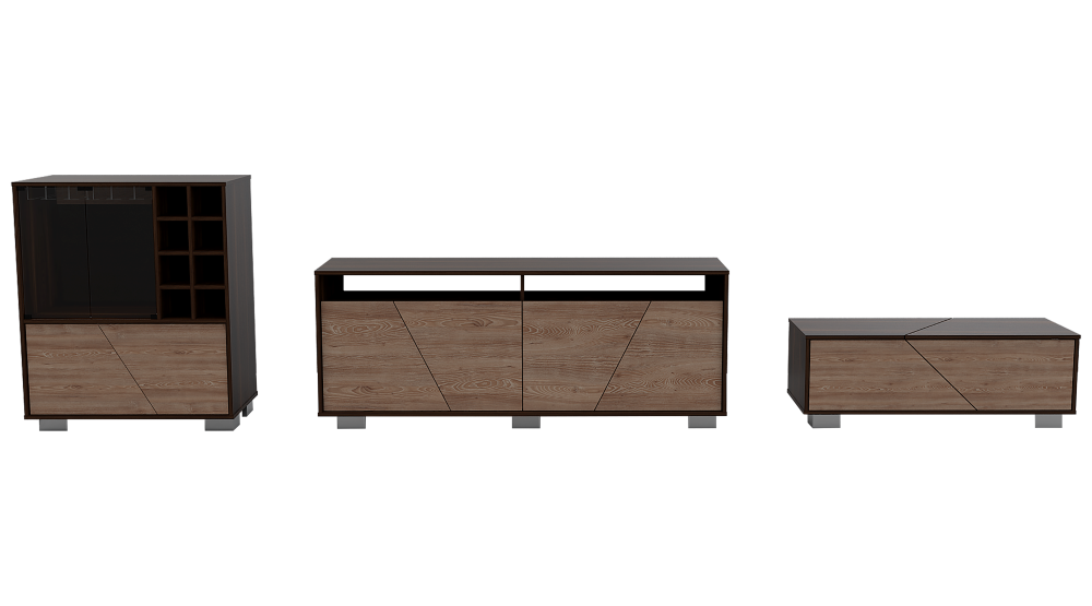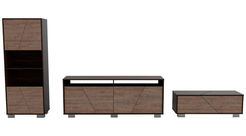 Combo Fraktal: Rack, con capacidad para televisor de 70 pulgadas. Mesa de centro, con varios entrepaños para colocar objetos y...