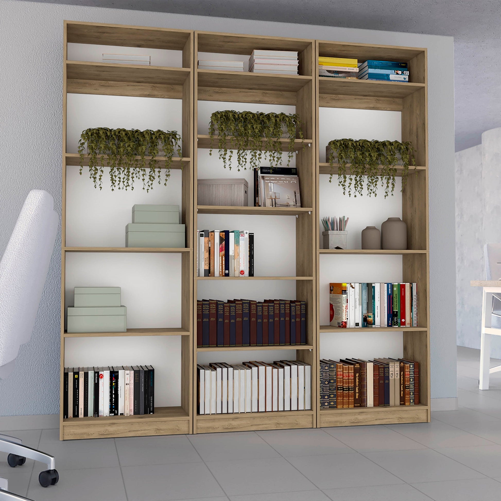 Combo Home, Estante Colección 28, Macadamia, con tres estantes
