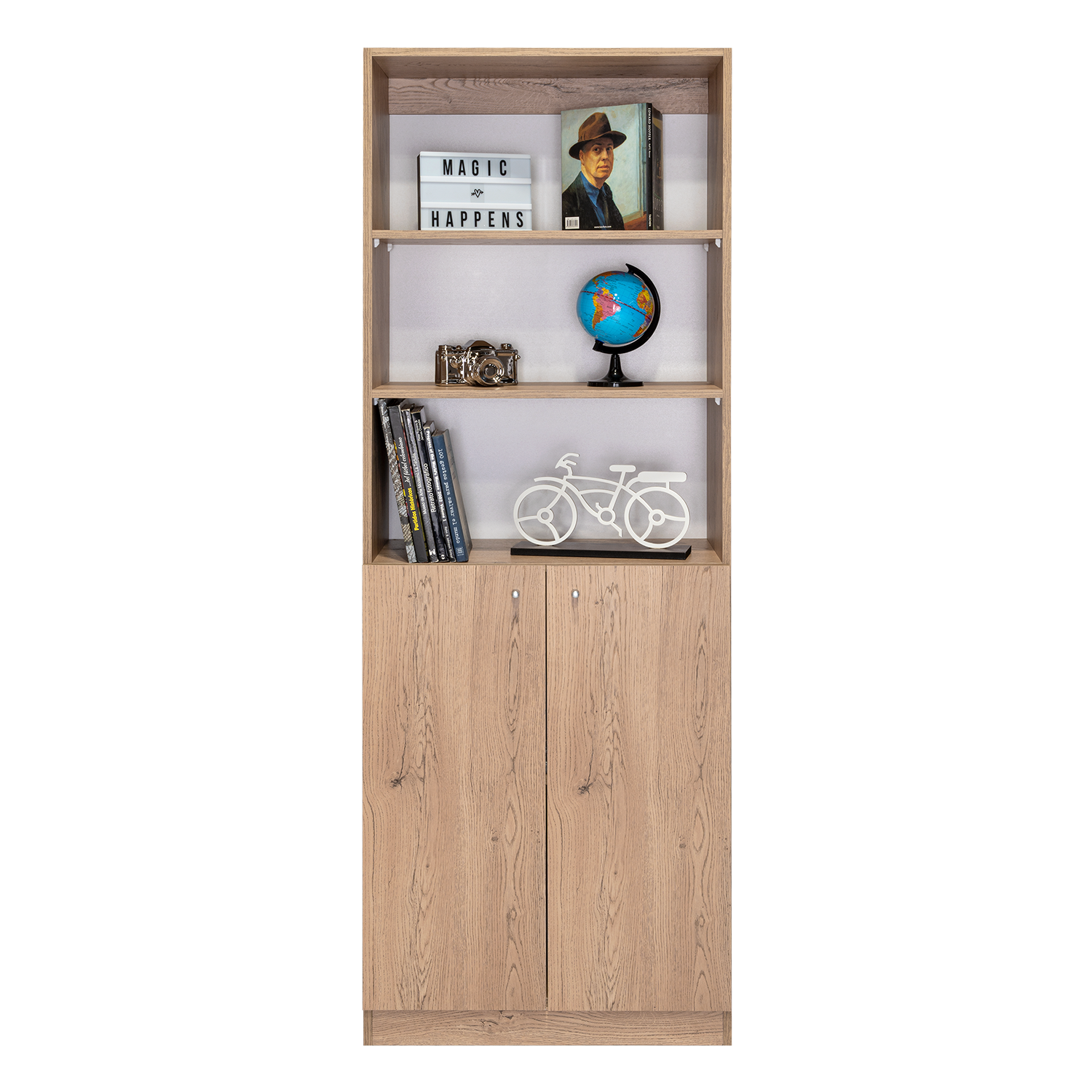 Estante, con múltiples repisas para colocar todo tipo de objetos y dos puertas batientes.
