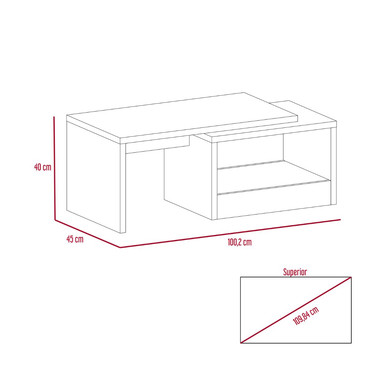 Mesa de Centro, con diseño moderno, patas en acero, espacios inferiores para colocar objetos decorativos, un cajón.