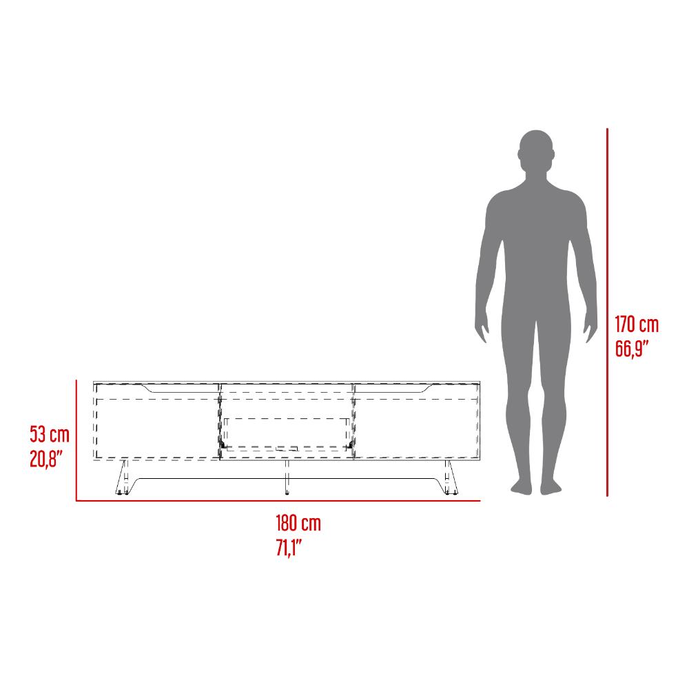 Mesa para TV, con espacio para TV de 80'', dos puertas abatibles y un cajón, prácticos espacios de almacenamiento